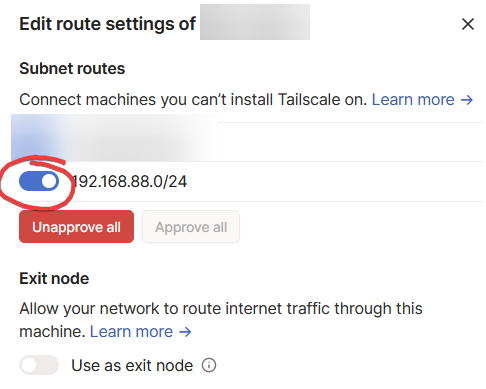 tailscale up --advertise-routes=192.168.88.0/24